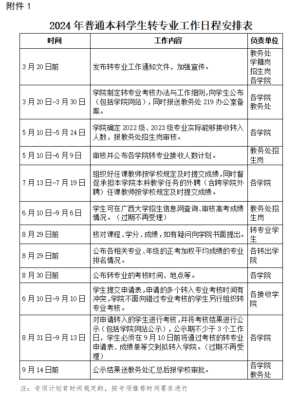 七、转专业的时间和办理程序按学校“关于开展2024年普通本科生转专业工作的通知”规定执行。