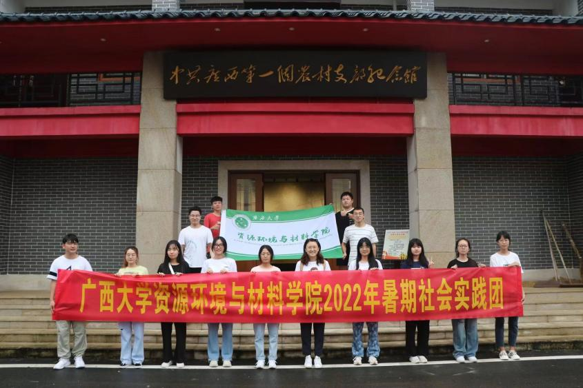 实践团师生在“中共广西第一个农村支部纪念馆”门前合影留念
