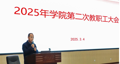 召开新学期工作布置会暨学院2025年第二次教职工大会。会议由院党委书记沈大强主持,全院教职工参会。