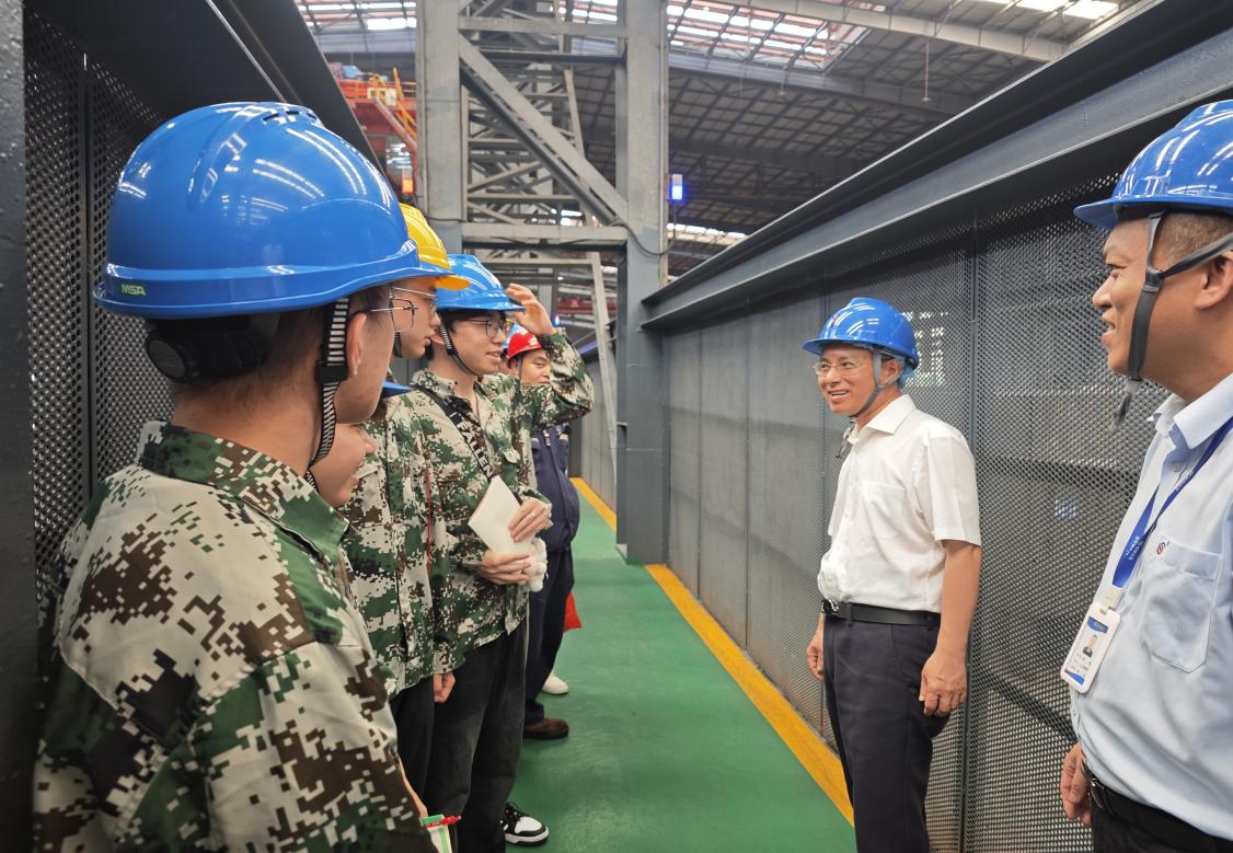 在走进生产车间调研时,还探望了学院正在盛隆冶金进行实习的同学,沈大强向学生代表们表达了亲切的问候,鼓励同学们在实验期间认真、虚心跟着师傅学、跟着技术专家学,学习工程前沿与技术关键,学习现代科技赋能的技能与安全高效生产的规范,把理论与实践充分结合,提高实践应用与创新能力。