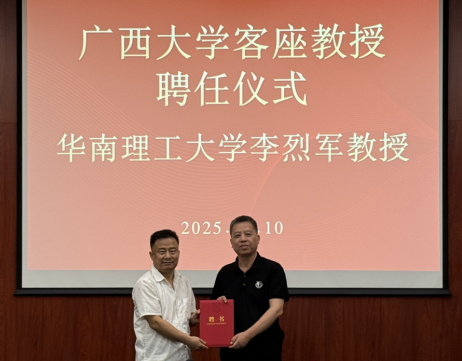 及广西有色金属及特色材料加工重点实验室客座教授。聘任仪式在我院举行,院党委书记沈大强主持,院长邹炳锁教授代表学院及重点实验室为李烈军教授颁发聘书。