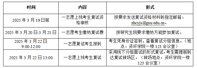 一志愿考生复试时间:2025年3月22日