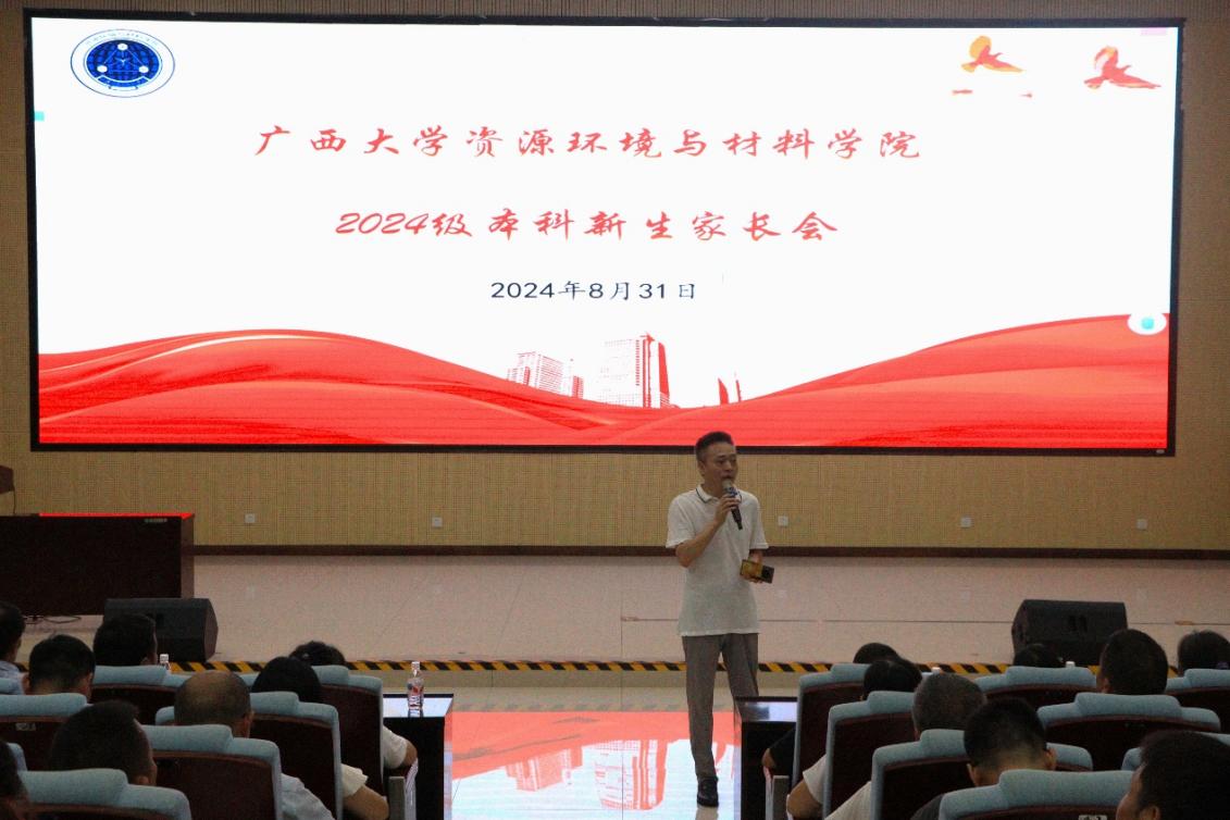 2024级本科新生家长会在学院123报告厅召开。教师代表喻泽斌教授、学工组老师及新生家长参加本次会议。会议由学院党委副书记、纪委书记吴达慧主持、主讲。