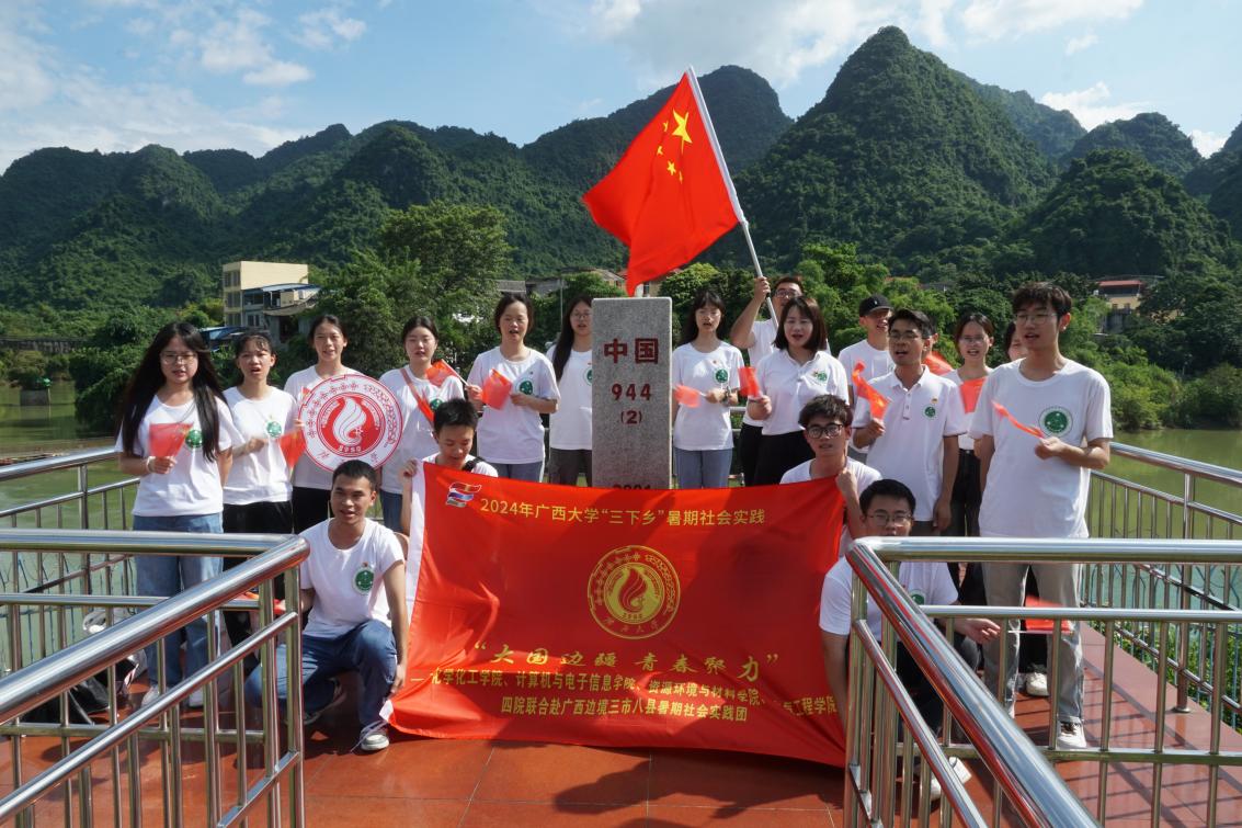 组建“卫国巡边,西大学子边疆行”实践团到崇左市龙州县和大新县开展2024年暑期社会实践活动。活动中,团队用“四个一”倾诉对祖国的深深思念,表达对祖国的切切祝福。