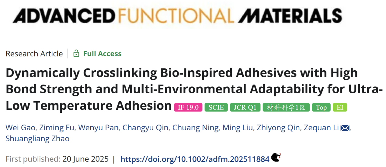 “结构热力学与微纳化工”课题组在特种木材粘合剂的研制与应用方面取得突破,研究成果以“Dynamically Crosslinking Bio-Inspired Adhesives with High Bond Strength and Multi-Environmental Adaptability for Ultra-Low Temperature Adhesion”为题发表在国际顶级学术期刊Advanced Functional Materials上,快看漫画