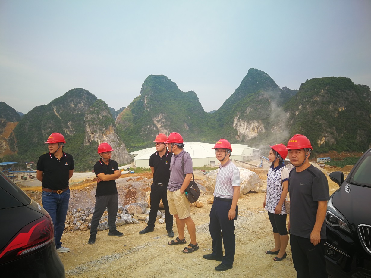 座谈结束,钟芳杰董事长、陆安丛总经理两位校友带领沈大强书记一行前往公司生产车间考察,了解绿色和谐矿山建设情况,并就矿山工程总承包、生产工艺以及矿山发展规划等技术与管理问题进行现场交流。