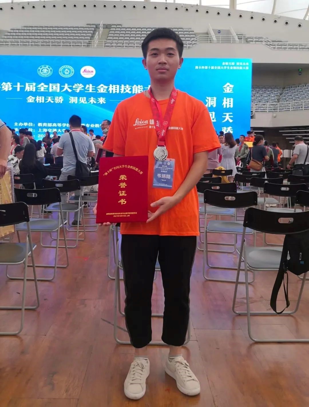 为提升专业技能水平和扩展知识面,韦炳糊积极参加各项专业竞赛。其中,在全国大学生金相技能大赛中,从5月份的校级赛到7月份的区级赛、再到10月份的国赛,他在老师的指导下进行了整整一个月的系统训练。尽管他练到手被磨破,但是他也没有放弃。经过刻苦的训练,他始终保持细心专注,稳定心态,最终获得了国家级个人单项二等奖的好成绩。