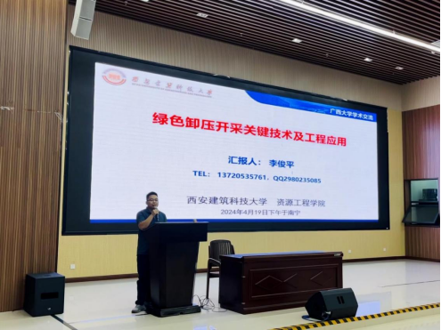 进行学术交流,并作了题为《绿色卸压开采关键技术及工程应用》的学术报告。报告由王品老师主持,学院相关研究方向师生参与本次活动。