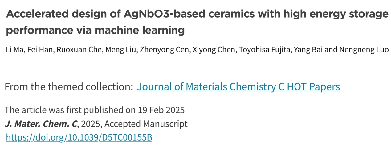 罗能能教授课题组在利用机器学习指导无铅反铁电储能陶瓷设计领域取得重要进展,相关研究成果以“Accelerated design of AgNbO3-based ceramics with high energy storage performance via machine learning”为题,发表在材料领域期刊Journal of Materials Chemistry C上,并被评选为热点文章。化学化工学院博士生马力和北京科技大学博士生韩飞为该论文的共同第一作者,快看漫画