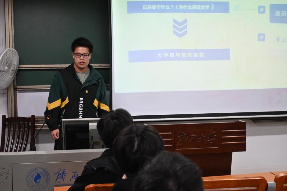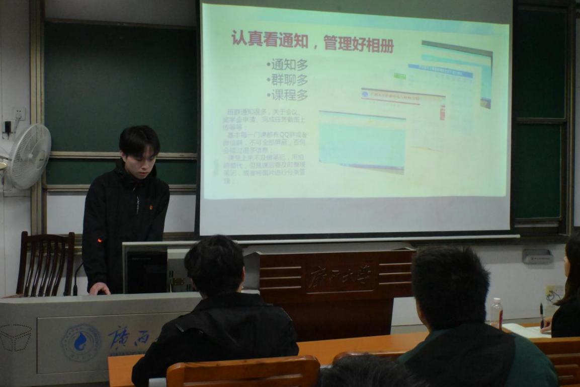 吴才可、陈永健、刘佳宁三位同学先后从课程学习、学科竞赛、社会实践、就业创业、保研升学等方面作分享与交流。他们强调要注重基础课程的学习,不断夯实专业理论基础,积极参与专业实践,拓宽视野,为未来的职业发展打下坚实基础。他们鼓励低年级同学关注自我发展,明晰个人定位,结合专业特长做好生涯发展规划,树立高度的集体意识与社会责任感,主动将“小我”融入“大我”,在服务国家、服务人民中实现人生目标。