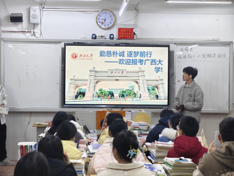 “我为西大打call!”——1月21日,矿物资源工程241班兰世民同学及其组员在广西资源县资源中学进行招生宣传。他们通过视频、图片和文字等形式介绍快看漫画