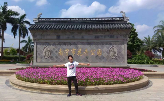 尽管平时很忙,但他并没有让学习和工作成为生活的全部。他喜欢练字,他说道“练字可以陶冶情操,磨练人的意志,培养人的气质”。每当春天来临,他还会和室友们一起踩踏自行车前往南宁市花卉公园赏花,他觉得赏花是一件发现美的事,会让自己在学习之余得到放松,愉悦身心,赏花的过程也可以增进和室友们的情谊。